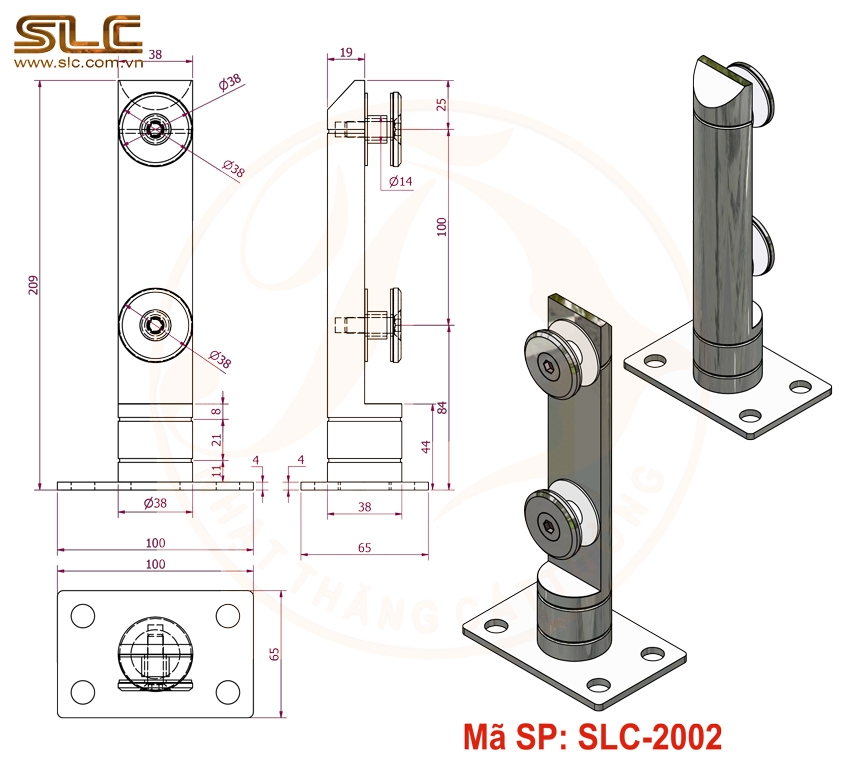 + Chân trụ lan can kính inox đặc D38 – Mã SP: SLC-2002