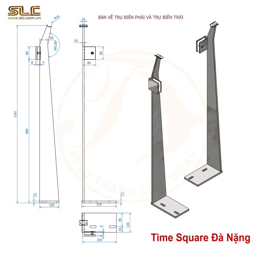 Hạng mục trụ lan can kính tại dự án Time Square Đà Nẵng được Công ty TNHH Nhật Thăng Cát Tường (SLC) sản xuất theo đơn đặt hàng của nhà thầu BM Windows, phục vụ cho công trình do Tập đoàn T&T Group làm chủ đầu tư – một trong những tổ hợp ven biển có yêu cầu kỹ thuật và thẩm mỹ rất cao.