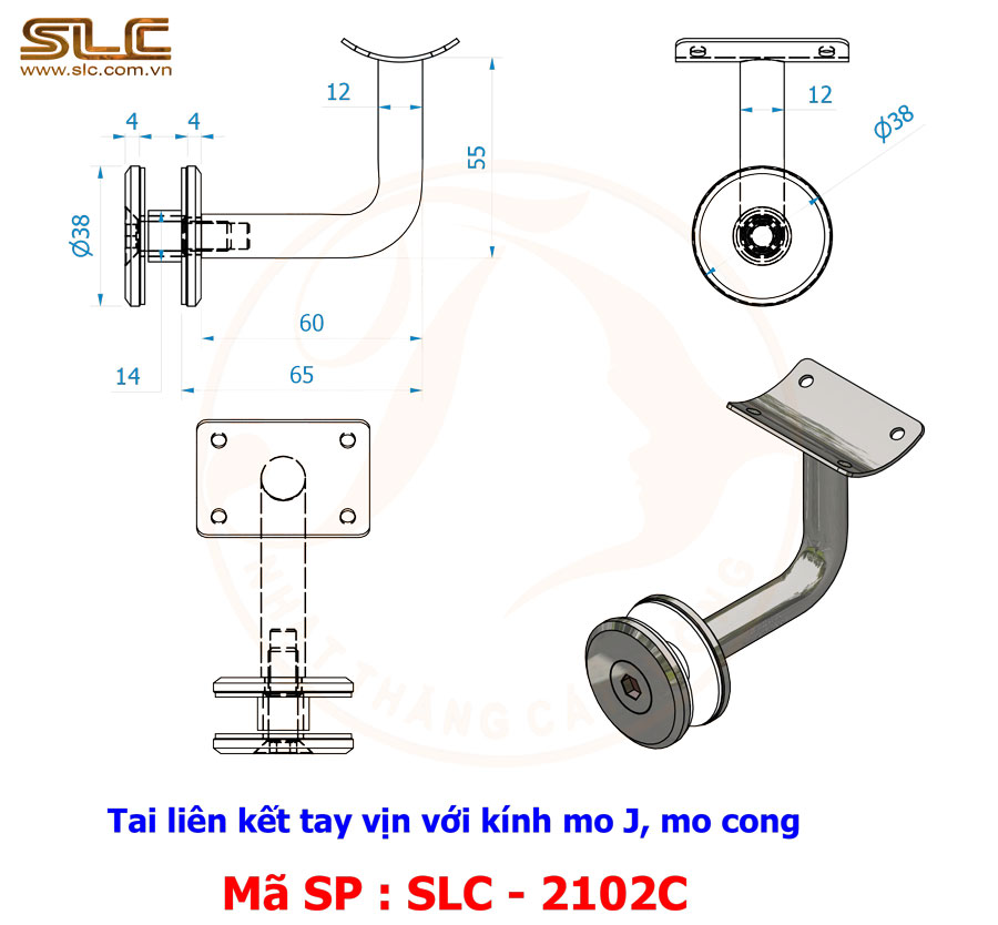 Tai liên kết tay vịn với kính chữ J (tai mo J) là một trong những phụ kiện quan trọng trong hệ lan can kính tay vịn. Phụ kiện này có nhiệm vụ liên kết và treo tay vịn lên tấm kính, giúp hệ lan can vừa chắc chắn vừa đảm bảo tính thẩm mỹ cho công trình.
