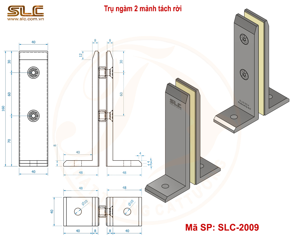 TRỤ NGÀM 2 MẢNH, TRỤ GÁ SẢN, TRỤ LÙN KT 160X40X8MM SLC 2009